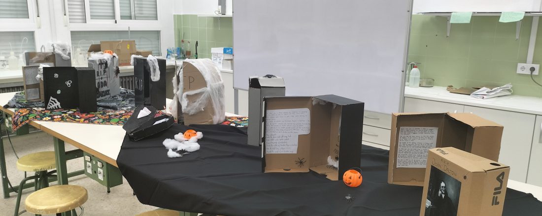 El pasado viernes 31 para celebrar Halloween el programa bilingüe llevó a cabo una actividad con algunos alumnos de 3º. Consistía en realizar pistas de personajes terroríficos en inglés para que los grupos de 2º de ESO adivinasen al protagonista. De este modo, el bilingüismo se hace parte activa en las distintas celebraciones del centro.