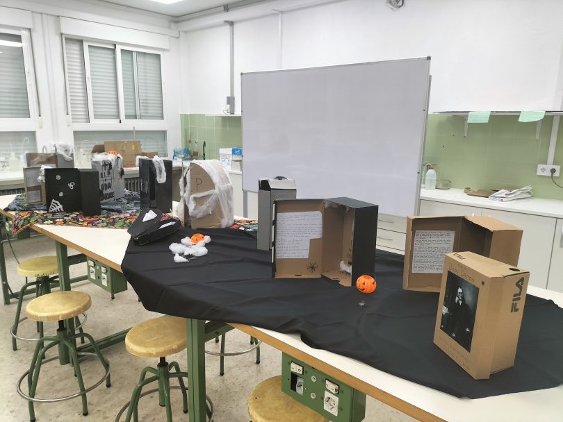 Con motivo de la celebración de Halloween el Departamento de Física y Química ha llevado a cabo una exposición en la que se muestran célebres científicos con información en inglés sobre su biografía.