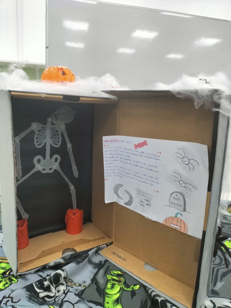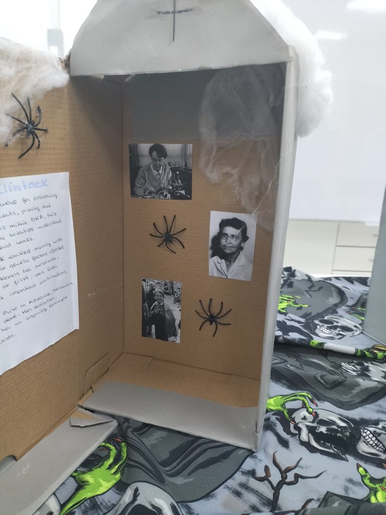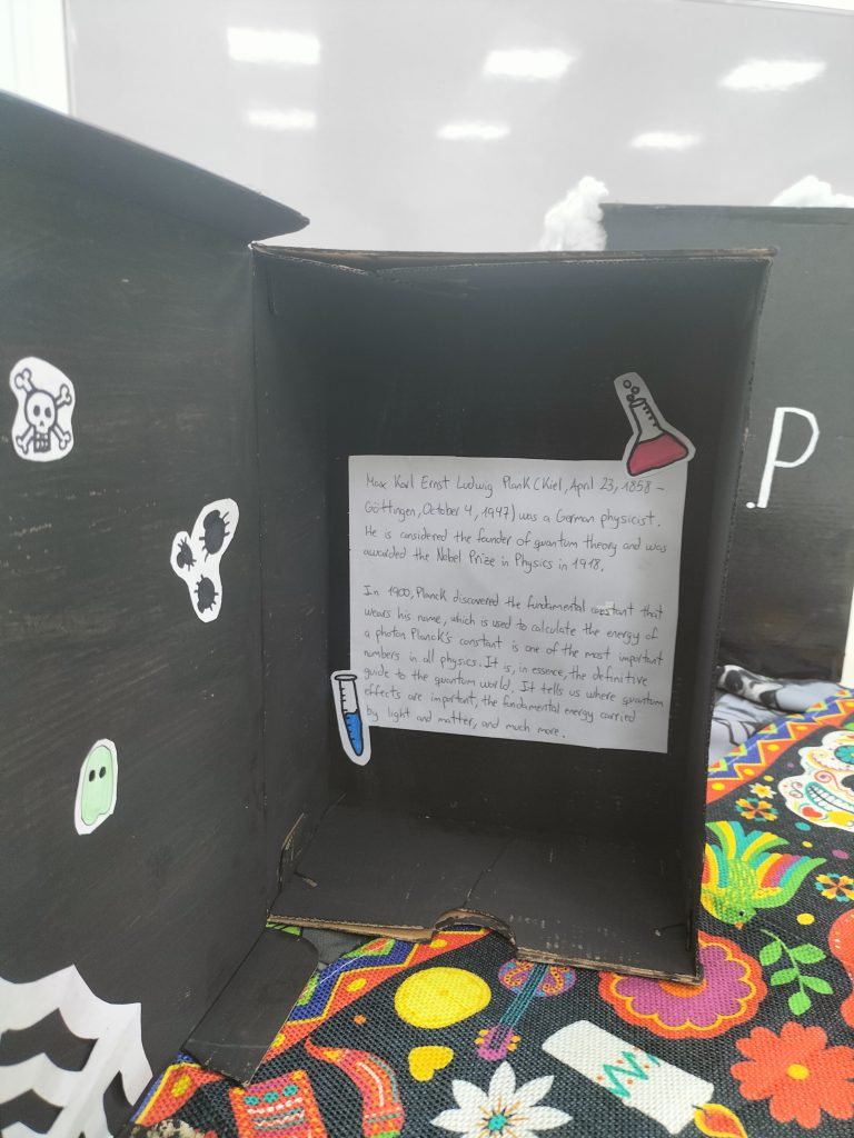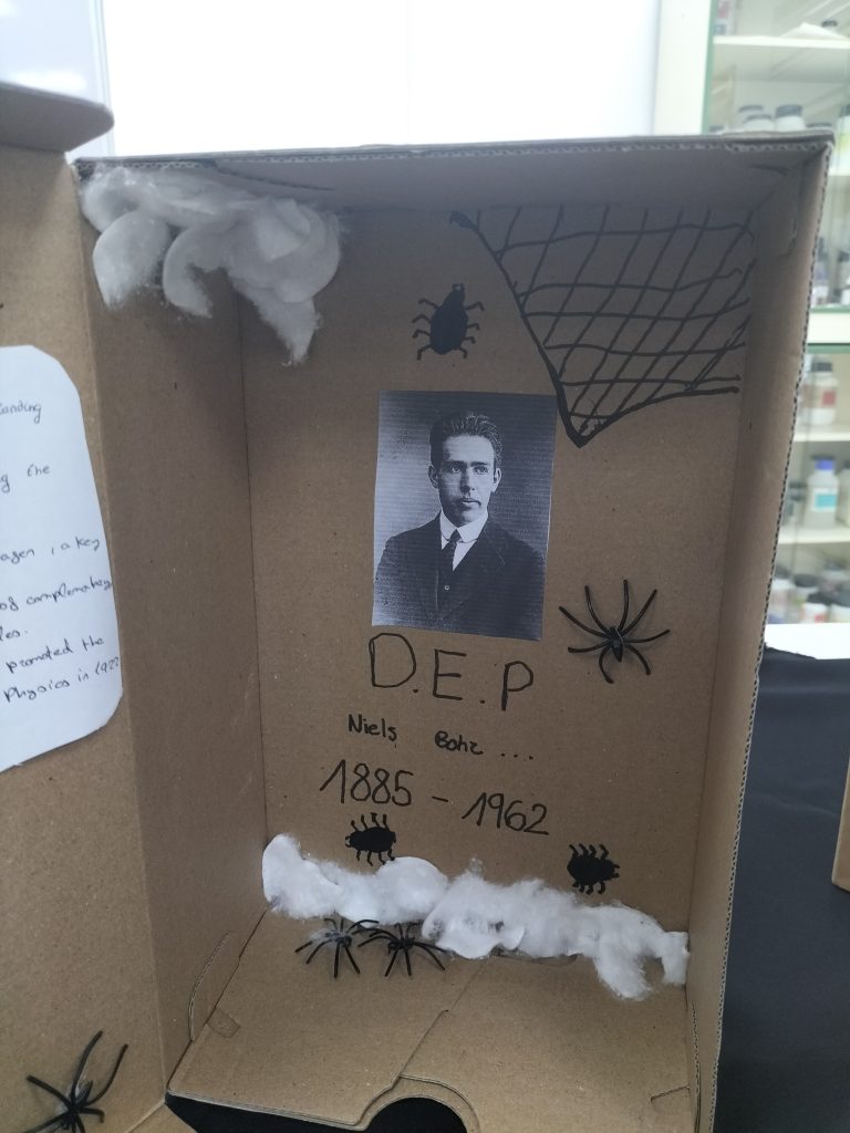 Con motivo de la celebración de Halloween el Departamento de Física y Química ha llevado a cabo una exposición en la que se muestran célebres científicos con información en inglés sobre su biografía.