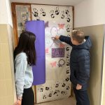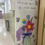 Esta mañana, el gran lazo morado que han colocado las madres del AMPA en la entrada nos daba la bienvenida. Después, el alumnado de la ESO ha podido comprobar que sus puertas violetas (decoradas por ellos con frases e imágenes que condenan la violencia) seguían en pie.