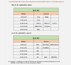 Calendario Prueba Extraordinaria