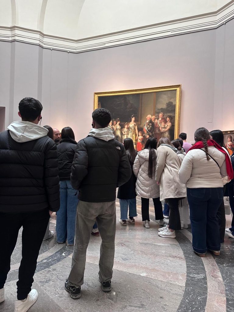 En Madrid, recorrimos desde el Templo de Debod hasta el Congreso de los Diputados, pasando por el Palacio Real de Madrid y la Catedral de la Almudena. En el Museo del Prado, nos detuvimos en Goya y Velázquez, las Pinturas Negras de Goya impresionaron especialmente a algunos alumnos, junto a El jardín de las delicias del Bosco. Aunque no pudimos realizar la gymkana en el Parque del Retiro, cerramos el viaje en el Panteón de Hombres Ilustres.